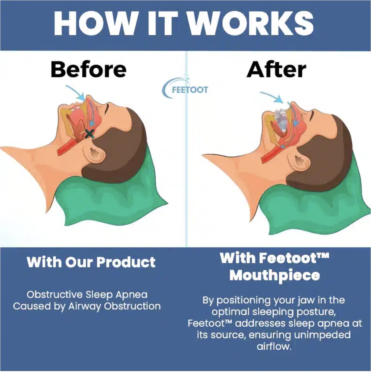Portability: Our anti-snoring device is designed to be travel-friendly. It comes with a compact storage box, making it easy to clean and carry wherever you go. Whether you’re at home, traveling, on vacation, or a business trip, you can enjoy a peaceful night’s sleep with the Soothie AirFlow Mouthpiece